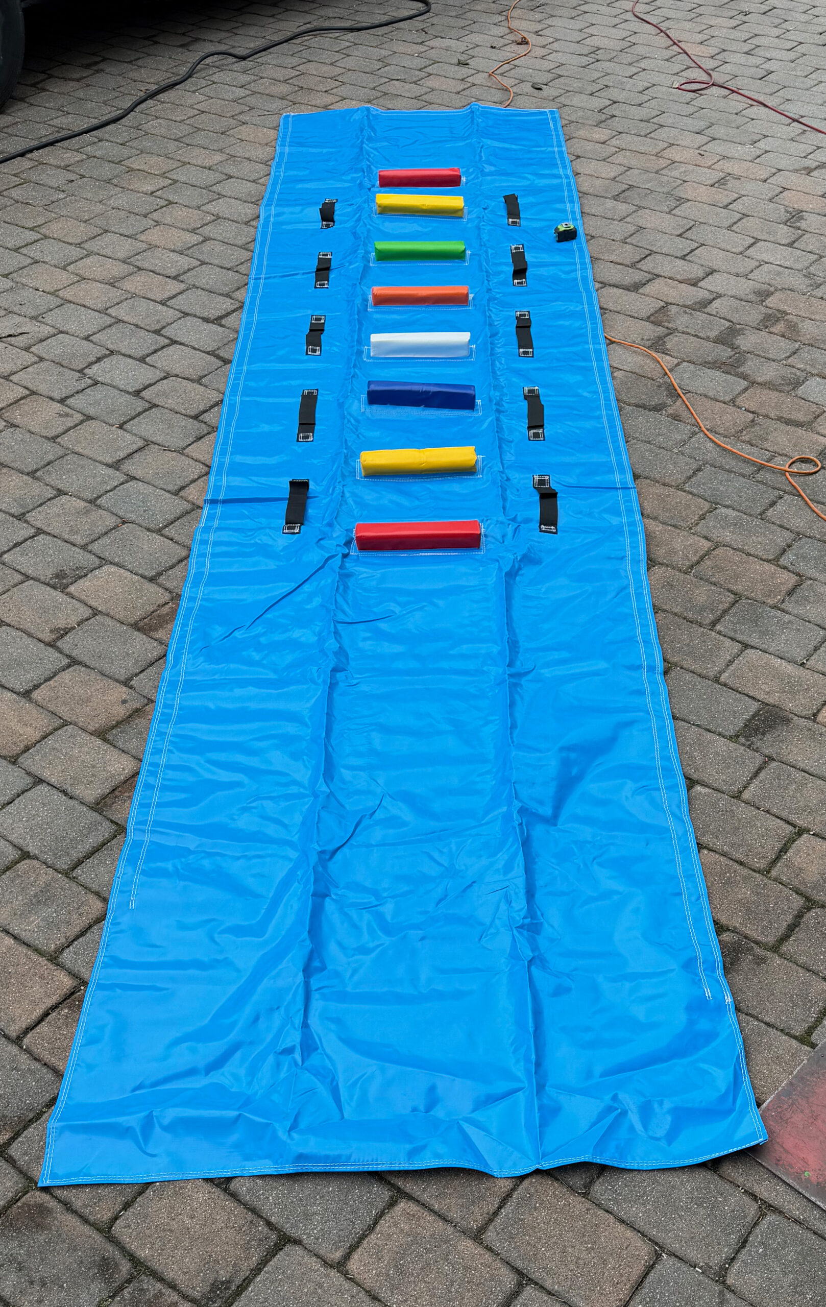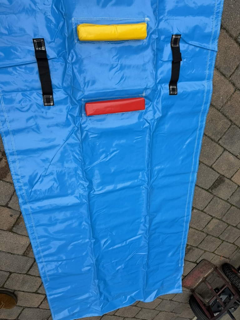 From the small empty area to is 32” approx from the end. The first step on the longer blank area to the first step is about 71”. Step space in between each of the steps is 11 inches approximately. Width is about 2 1/2 inches. The length is approximately 12 inches wide. And the height of the step is approximately 2 inches inches. The distance from the hand belt to the other side hand belt outside the outside is approximately 29 inches. 2″ velcro on back except on the end of the lower 71″ area as shown. Price below includes shipping.